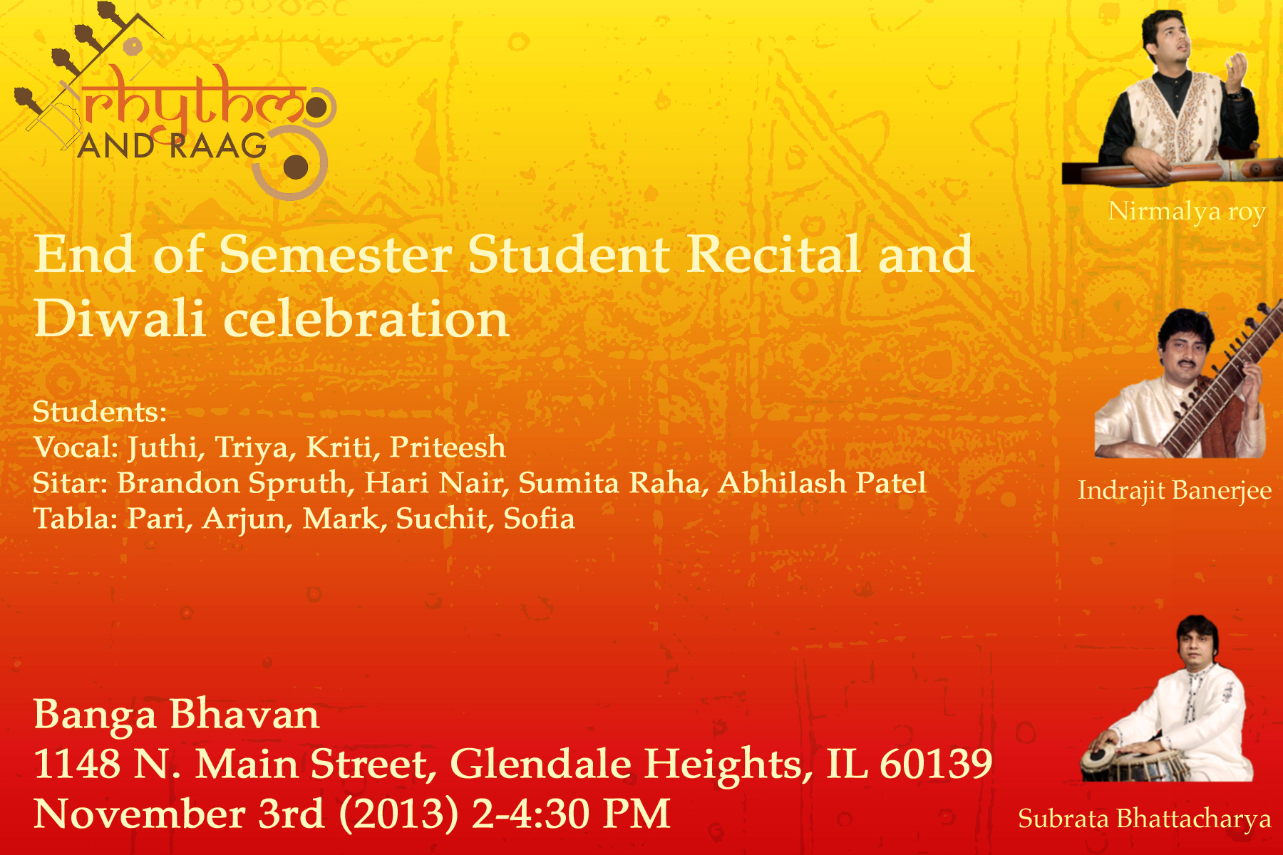 ‘November 3_edited-1’Published October 19, 2013 at 1800 × 1200 in Rhythm and Raag End of Semester Student Recital and Diwali Celebration with Special Guest Fareed Haque!!! ‹ Return to post Leave a comment Cancel reply Δ