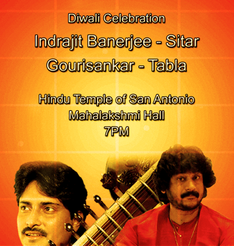 Indrajit Banerjee – Sitar Gourisankar – Tabla Hindu Temple of San Antonio Mahalakshmi Hall 7pm